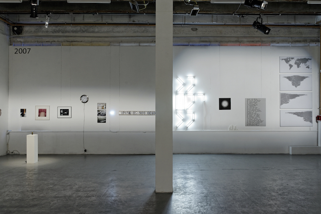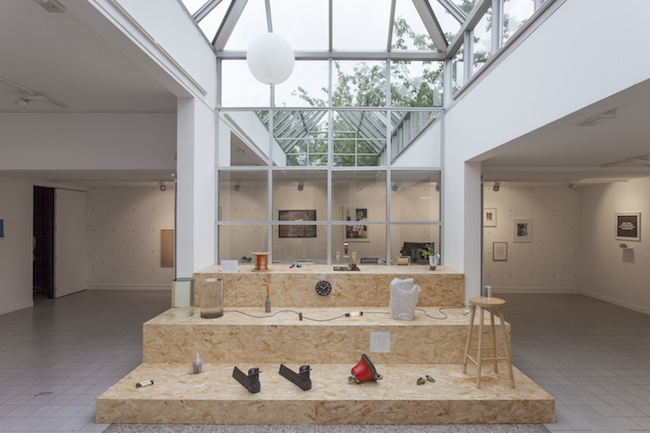 Exhibition view “Collection Joseph Kouli (29/10/16 – 15/02/13)” in Mains d’Œuvres, Saint-Ouen, 2013. Works by : Erwin Wurm, Angelika Krinzinger, Oleg Kulik, Bertrand Planes, Bruno Peinado, Angela Detanico & Rafael Lain ©Aurélien Mole