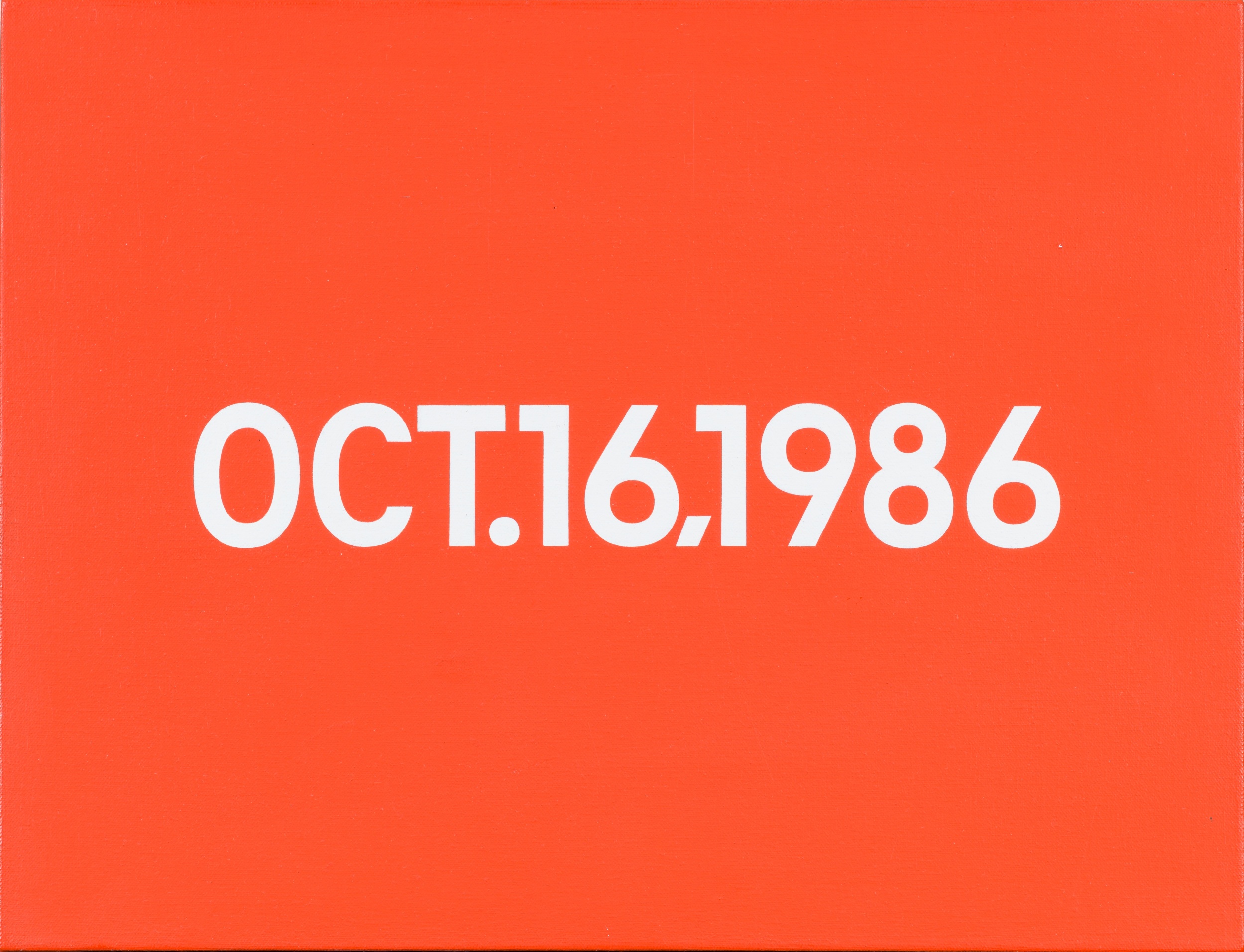 On Kawara, Oct. 16, 1986. 1986. Acrylic paint on canvas, 33 x 44.5 cm. Collection Hans and Monika Furer