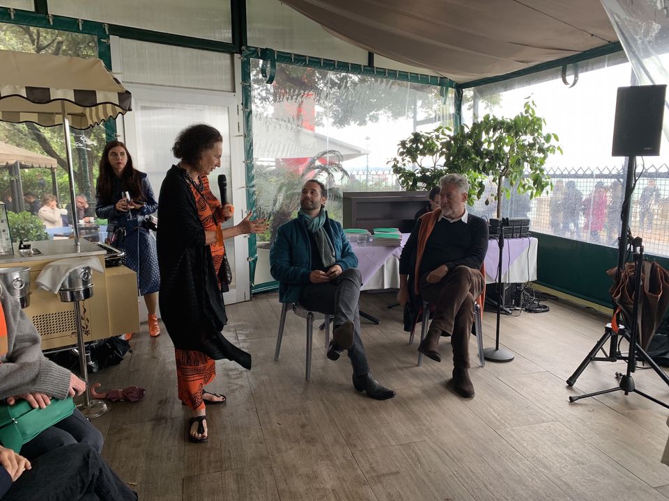 The central occasion of the event was a talk/discussion between two protagonists of the “Arterritory Conversations with Collectors 6” – cult personality of former perestroika, music journalist and showman Artemy Troitsky and Swiss architect Leopold Weinberg. They both spoke on the meaning and tasks of art in the worldly space in the 21st century. This intense and somewhat tempestuous intellectual discussion blent in with the menacing rain cloud over the Venice lagoon, thus confirming that a great talk can also be labeled as a performance.
