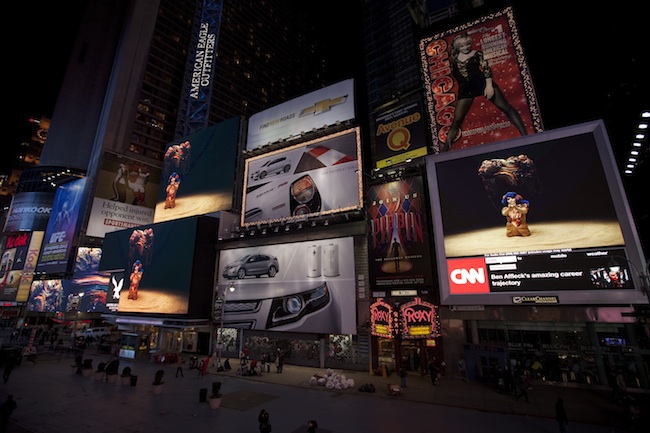 Björk & Andrew Thomas Huang. Mutual Core (2012) at Times Square. Photograph by Ka-Man Tse