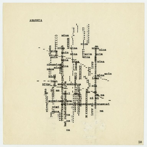 Concrete poetry, as such, emerged in Brazil in the 1950s. Interestingly enough, Raul Meel, who lived in Soviet Estonia, did not know anything about the similar movement in Brazil, and developed the method independently – which he called “typewriter poetry”, and his works as "typewriter drawings”. All of the geometrical forms are created by deconstructing words and sentences, and repeating letters. The typewriter always played a significant role in concrete poetry. And in terms of Meel’s works, the sound of the poem also plays an important part. Apparently, he always reads his poems out loud while working, .