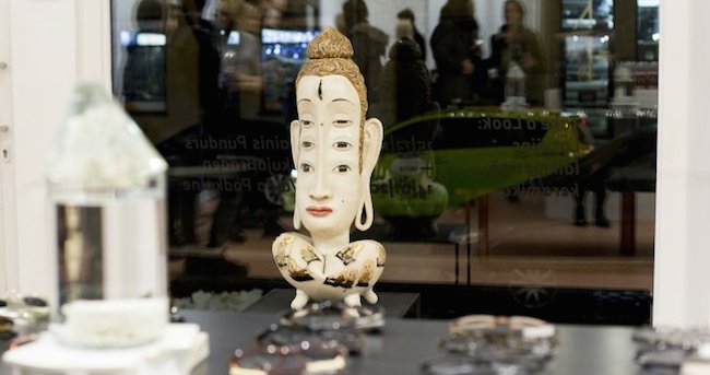 SkujaBraden’s work All Seeing One, 7 eyed Buddha sculpture (2010), in the recent ceramics exhibition organized by Arterritory.com in the eyeglass/optical salon Take a Look, in Riga