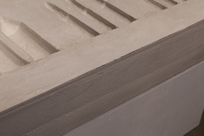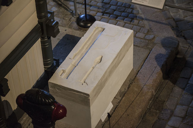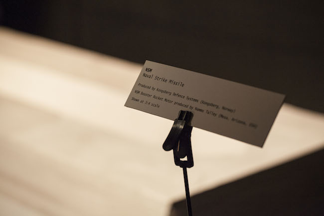 The three stark white objects placed among the exhibits at the Norsk Teknisk Museum are accurate negative casts of military weapons being produced today by the Norwegian firms Kongsberg Gruppen and Nammo. Since much of the exploration lay on the idea of molding the absence, we had the opportunity to play with the dramaturgy of the museum by intervening into the audience-chosen narrative by making the exhibits appear unexpectedly, and in relation with the existing contexts. Somehow, by laying it out as an “open work” (Umberto Eco. 1962), the exhibits (accompanied by minimalistic signs describing the objects) didn’t aim for one single interpretation nor for a closed narrative; rather, it challenges the public to construct their own meaning and values. Therefore, two of the objects were placed in relation to the 20th-century romanticism of progress, which are located in the departments of communication and revolutionary machinery. The cast of the M72 (LAW Light Anti-Tank Weapon) caught the light on its poetic, already-decaying surface of plaster, surrounded by the phone booth on one side, a train and cars on the other side, and an airplane “flying over” above. The collection of training ammunition (Plastic Blank Ammunition 40mm L70; 75mm; 30mm; 25mm) was placed one floor lower, close to the biggest object in the museum – the paper machine, a sort of symbol of the potential to spread information to the masses in earlier days. The “grand finale”, the NSM (Naval Strike Missile) realized at three-fourths its actual size, thereby resulting in a length of 2.6 meters, was placed next to the temporary exhibition of the Norwegian oil industry and its “environmentally-friendly image”, which, sadly, is sponsored by the oil companies themselves. The materiality of the objects played an important role in that it caused the exhibits to vaguely touch upon the boundary between objects of function juxtaposed with the poetry found in them. By choosing the medium of plaster, we ensured a similarity of effect of geological layers being built on top of each other through time; we were also aiming at creating something rather more earthy and not characteristic for a weapon.