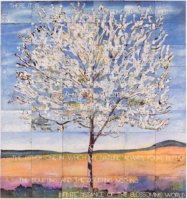 Imants Tillers. The Blossoming Tree, 2017. Synthetic polymer paint, gouache on 54 canvas boards, no. 98784 - 98837 228.5 × 213cm