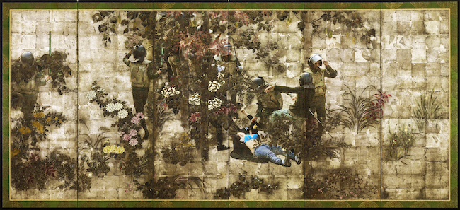 We Shout and Shout but No One Listens, art historian Nicholas Mirzoeff writes on the wall of the exhibition, ‘is about the relationship of the visible and the invisible. It is not an abstract idea but a lived reality.’ By its title we might also say that it is about the audible and the inaudible, and with reference to the accompanying text written by the philosopher Judith Butler for the catalogue, the grievable and the un-grievable; that is, who is generally recognisable as human, as a life worthy of grief, in the first place, and who is not. In this exhibition curated by CAMP (Centre for Art on Migration Politics) at the Trampoline House, a community centre for refugees in Copenhagen, six international artists, each with a personal experience of migration and conflict, explore representations of war and critique their inefficacy in producing appropriate and sustained responses.