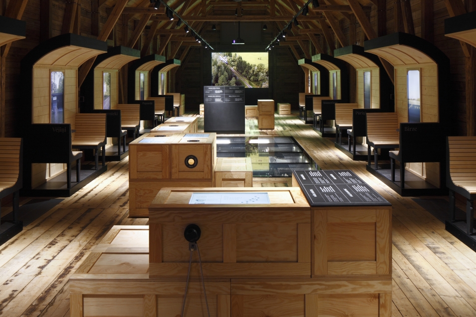 Biroja H2E komandas radītais ekspozīcijas vizuālais tēls ir cieši saistīts ar tās saturu un vēstījumu. Ekspozīcijas materialitāte loģiski radusies, apzinot kontekstu, funkcijas, šķūņa tektoniku un vizuālo vēstījumu. Rezultātā radīta iesaistoša izstādes arhitektūra, kas paredz telpisku piedzīvojumu, tomēr nekļūst pārlieku izklaidējoša un neļauj formai dominēt pār saturu.