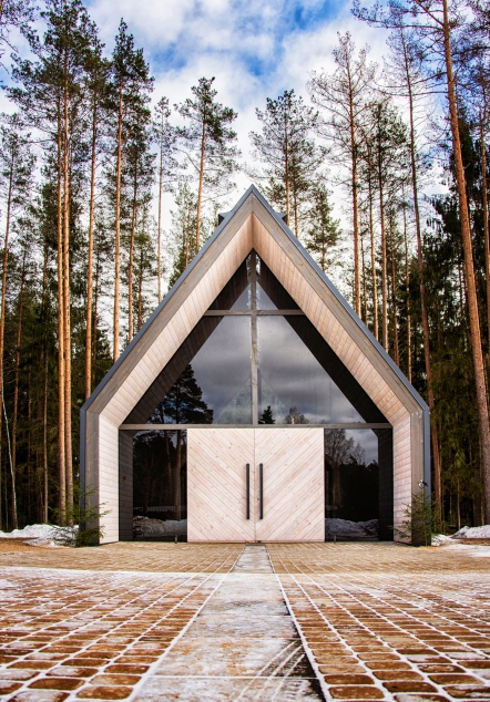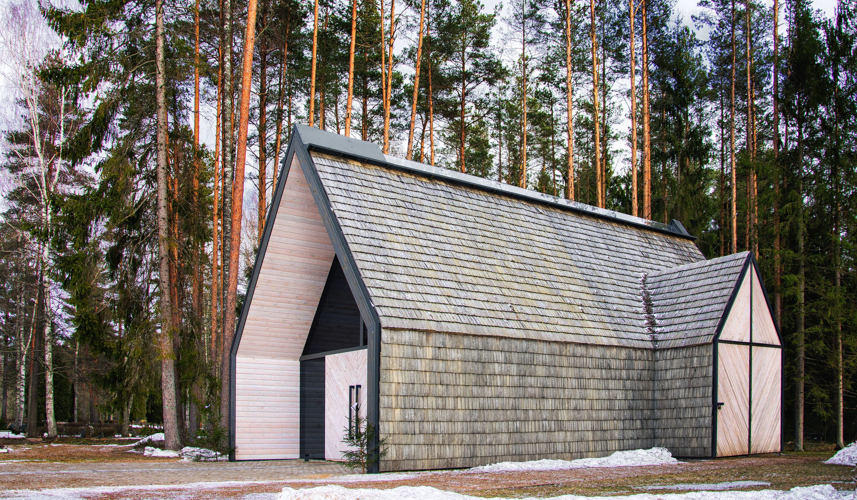 Vērts pamanīt. Ēkas centrālais elements ir krusts, kurš caur grīdas segumu un jumta virsgaismu savieno pasaulīgo ar debesīm. Krustam nav konkrētas robežas, un aiz tā caur gala stikloto sienu redzams skaisti iekopts meža dārzs, kas sajūtu līmenī ieskicē vietu, uz kuru tiek pavadīts aizgājējs. Kapličas ēkā krusta forma tiek izspēlēta dažādos veidos – gan detaļās un apjomos, gan filozofiskā ziņā. Savukārt masīvie koka vārti ieejas daļā simboliski atdala šo pasauli no viņpasaules – tie ir pēdējie, kas tiek aizvērti aizgājējam.