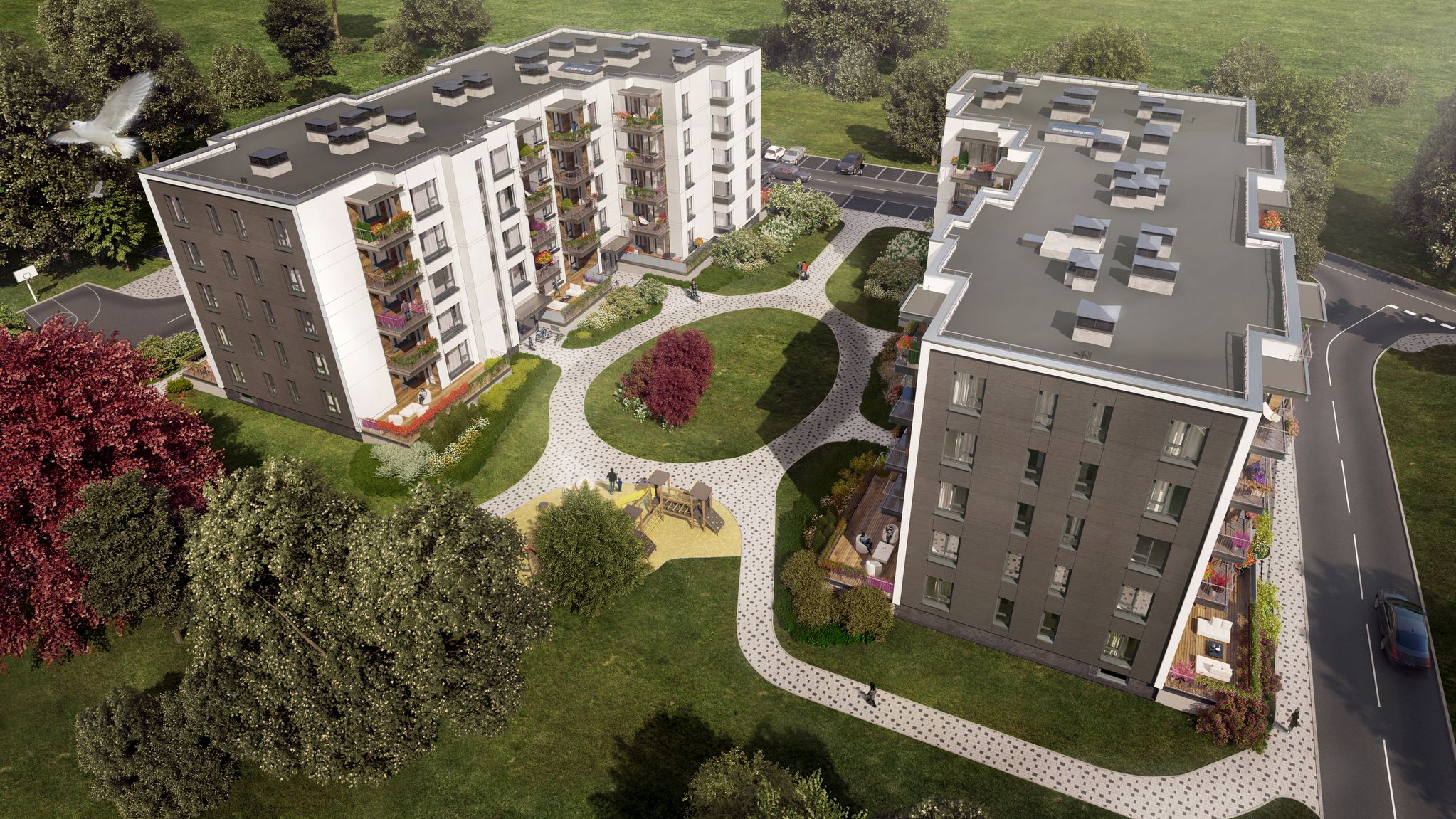 Žūrijas vērtējums: “Dzīvojamie rajoni vairākumam asociējas ar pelēko krāsu, masīvu apbūvi, bezpersoniskiem pagalmiem, haotiskām autostāvvietām. Šī projekta arhitekti un attīstītāji izvēlējušies nenorobežoties no apkārtnes, bet, veidojot mērogam atbilstošu kvalitatīvu ēku kompleksu, radīt paraugu iespējamai visa rajona ainavas izmaiņai.”