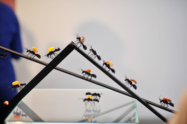 Īpaša izstādes daļa ir tās scenogrāfija, kuru veidojuši modes dizaineri Mārīte Mastiņa un Rolands Pēterkops jeb MAREUNROL'S. Dzintara meklējumos viņi velk paralēles ar skudru ceļu, kas spilgti atveidots 650 rokām darinātu melnu skudru veidā, kuras tekalē starp ekspozīciju un pat uz apgaismojuma sliedēm, uz muguras nesot pa dzintara gabalam, vai tukšā tipinot atpakaļ pie dzintaru kaudzes. Neaptverami filigrāno un čaklo abu dizainera roku darbu, kur katra kājiņa piestiprināta pašrocīgi, ikvienam ir iespēja iegūt savā īpašumā, par 5 eiro iegādājoties jebkuru no skudrām un dāvanā saņemot citrondzelteno izstādes katalogu.