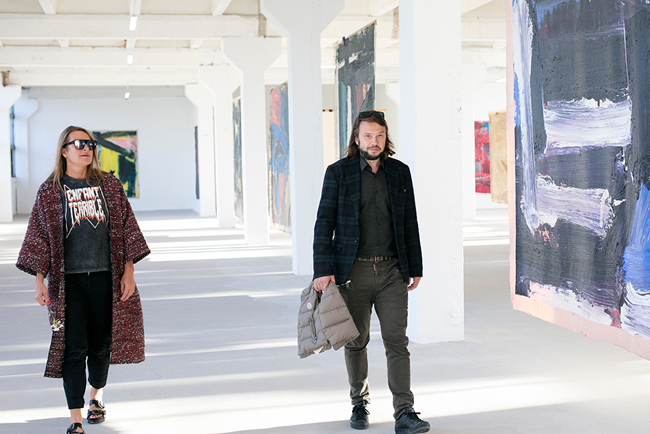 Vilnis Vējš pie Artūra Virtmaņa darba