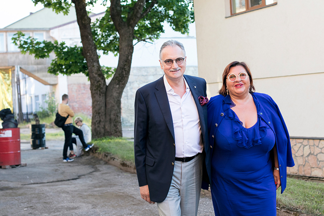 Pa labi Cēsu domes priekšsēdētājs Jānis Rozenbergs ar kundzi