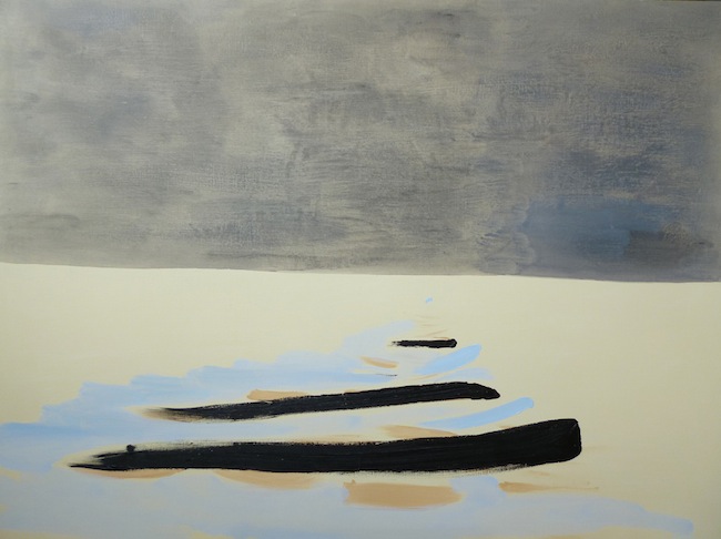 Tehniskā ziņā – jaunajā izstādē es klāju biezāku krāsu un safleicēju. Simboliski tas nozīmē, ka notikums nebeidzas, ir kustīgs, ilglaicīgs. Tas man ir jauns paņēmiens, jo skatījos, ka skicēs līnija vienmēr izplūst, un, domājot, kā to panākt arī gleznā, sapratu, ka eļļas krāsās tās vietas būs safleicētas. Vēl arī lazēju, un tas asociējas ar plānu papīra čamdīšanu, proti, vēl īsāku mirkli, kurš gandrīz vai neeksistē.