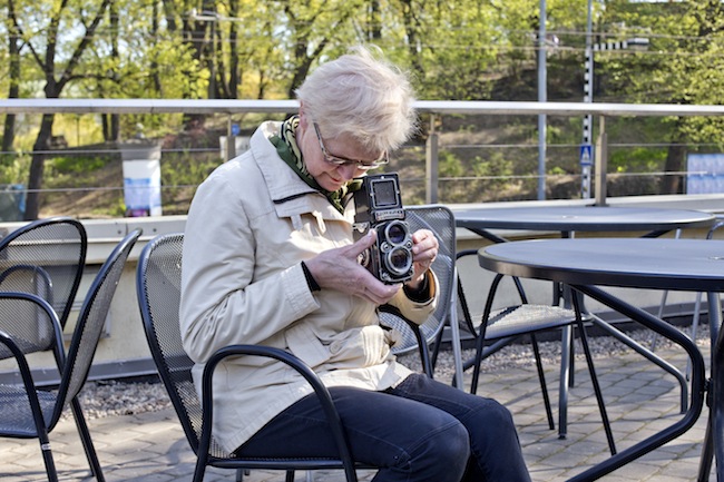 Ar digitālo, manuprāt, nemaz nav vienkāršāk. Fotofilma ir ļoti plastiska, tai ir dziļums, vairāki slāņi. Lai es dabūtu digitālu kameru, kas spēj radīt tādu rezultātu, man ir jābūt bagātai vai daudz jāstrādā, lai to atpelnītu. Ne es to daru, ne es to darīšu – es vairs tik daudz nestrādāju. Arī filmu fotogrāfija ir ekskluzīvs vaļasprieks. Bet tas man dara prieku, un, kamēr spēju, es labāk nodarbojos ar to. Man ir arī pietiekami kvalitatīvs digitālais aparāts, bet tas ir tikai tādēļ, ka dzīve ir ļoti skaista un tajā viss kas notiek, un, piemēram, attiecībā uz ceļojuma piezīmēm es nezinu nevienu cilvēku, kurš ceļotu apkārt ar lielo statīvu un kameru. Tādos skrējienos ir labi, ka ir “ziepjutrauks” – man vajadzīgas tikai piezīmes, es krāju mirkļus. Man visu mūžu braucienos ar kori ir bijis jārūpējas, lai līdzi būtu vajadzīgie objektīvi, akumulatori, zibspuldzes un daudz filmu. Arī skolā man nepieciešams digitālais aparāts, jo tur ir jābūt līmenī, jāzina, kas notiek tehnoloģijās. Filmu ražošana pamazām apstājas un analogā fotogrāfija līdz ar to kļūst arvien sarežģītāka nodarbe. Piemēram, (fotogrāfe) Anda Bankovska kaislīgi mīlēja polaroīdu. Tas ir vienreizējs uzņēmums, attīstās gaismā, bet tā arī ir izmirstoša suga; tas pats notiek ar filmām. Bet es domāju, ka manam mūžam vēl pietiks.