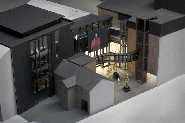 Ieejot pa parādes ieeju, skatītājs nokļūs gaišā tunelī, kas ved uz pagalmu. Pagalms faktiski ir divi kvartāli. Pa vidu tiem ir 19. gadsimta beigu vara kaltuve, ko projektējis Oskars Bārs, un tālāk ir Karla Felsko projektētā ķeta lietuve. No šīm divām vecajām mājiņām daudziem visspilgtāk acīs ir iekritusi Smiļģa būvētā sliede, kas iet kādus metrus virs galvas. Reminiscence par šo sliedi būs aktieru pārejas tiltiņš. Pašā pagalmā būs priekšlaukums un ieeja teātrī, kas būs pārsegta pagalma daļa. Teātrim ir divi apjomi, viens no tiem ir vecais un otrs – jaunais, kurā ir dekorāciju noliktavas, mēģinājumu zāles, kā arī jaunā trešā zāle ar 200 vietām, kas atļauj aizstāt Talsu ielas zāli. Iekšpagalmā ir ugunsmūris un vesela labirintu pasaule, kurā bija pietiekami daudz telpas, lai atļautu iebūvēt iekškvartālā no ielas nemanāmu jaunu ēku, veidojot skaistu ansambli. Beidzot visas trīs teātra zāles būs uzprojektētas tā, ka varēs darboties normāli. Pat Smiļģa skatuve līdz šim nav darbojusies normāli, jo tai nepietiek augstuma, un šī iemesla dēļ nevar uzņemt viesizrādes.
