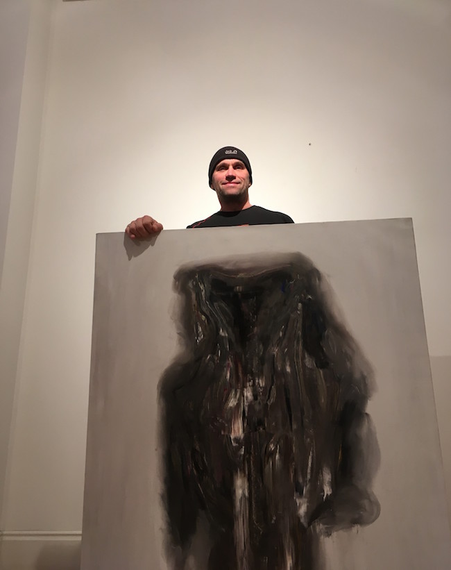 Verners Lazdāns pie gleznas „Kažoks“ galerijā „Alma“. Foto: Gints Gabrāns