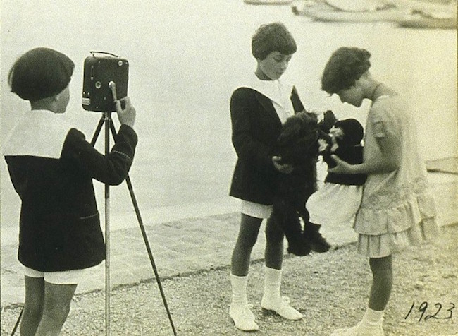 “Bolex” kameras izgudrotāja Žaka Bolsija bērni ar viņa kameru. 1920. gadi. Avots: nofilmschool.com