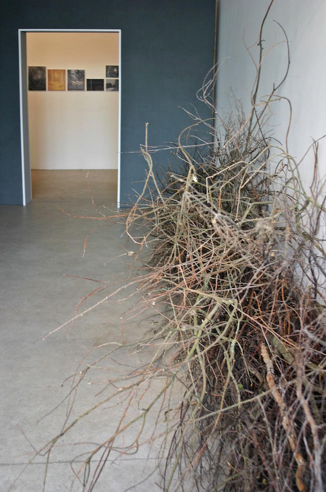 Savu versiju piedāvā eksponātu raksturs. Pirmajā izstādīti objekti, kurus varētu uzskatīt par dabiskiem, autentiskiem, ja vien to novietojums izstāžu zālē pats par sevi jau neradītu estetizētu instalāciju: pa labi – sausu zaru krāvums, līdzīgi kā meža izcirtumos, pa kreisi – maza fotogrāfija. Māksliniece nepārprotami atsaucas izplatītajam paņēmienam veidot izstādes no gataviem objektiem, ar sastatījuma un kompozīcijas līdzekļiem tiem piešķirot jaunu saturu. Šādai manierei atbilst arī fotogrāfijas izmantojums – tā ir nepārprotami sena un ņemta no ģimenes arhīva, kaut gan publicitātes materiālos tas nav īpaši uzsvērts. Tomēr Heinrihsones projektam nebūtu precīzi piedēvēt dokumentālas asamblāžas stilistiku vai aktuālo identitātes meklējumu tematiku, kas bieži vien pavada līdzīgu materiālu izmantojumu – izstādīto priekšmetu saistība nemaz tik viegli rokās nedodas. Izstādes anotācijā galerijas mājas lapā gan minēta zaru līdzība ar grumbām fotogrāfijā attēloto večuku sejās. Tas droši vien ir pamatoti, ņemot vērā autores iepriekšējās personālizstādes tēmu “Vecums” (galerija “Māksla XO”, 2010), lai gan konkrētajā fotogrāfijā grumbas nemaz nav saskatāmas. Jāatzīmē, ka zari bija attēloti vienā no toreiz izstādītajām gleznām – tie apvija kāda padzīvojuša pāra galvas kā vainagi. Šim motīvam Annas Heinrihsones mākslā ir vēl senāka priekšvēsture – 2010. gadā režisors Viesturs Meikšāns Valmieras teātrī iestudēja Edvarda Virzas poēmas “Straumēni” skatuves versiju. Kostīmus darināja Heinrihsone. Zari rotāja ne tikai personāža galvas, bet bija attēloti arī apdrukā uz kostīmu auduma. Šis pats zīmējums bija izmatots arī izrādes plakātā – zari atgādināja plaužu anatomisko zīmējumu. Tātad varētu pieņemt, ka arī šajā izstādē zariem un attēla sižetam ir vizuāli simboliska līdzība.