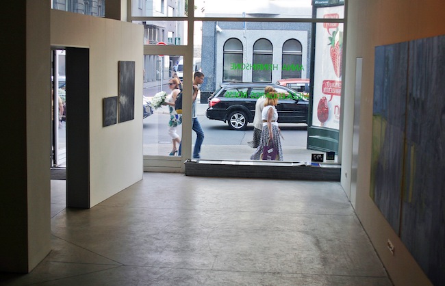 Diez vai galerijas “Māksla XO” baltā zāle līdz šim piedzīvojusi tik nozīmīgu pārbūvi vienas izstādes vajadzībām – Anna Heinrihsone esošo plānojumu papildinājusi ar divām starpsienām, kas savienotas taisnā leņķī un sadala telpu divās daļās. Vienai, mazākajai, sienas krāsotas tumši pelēkas, un tā kalpo kā ievads otrajai, kas, tradicionāli balta, apliekusies ap pirmo. Uzreiz noprotams, ka ne jau vēlme palielināt sienu platību bijusi šādas starpsienu izbūves iemesls – kā tas parasti notiek, kad izstādēs ir tik daudz rādāmā materiāla, ka visam nepietiek vietas. Pieeja ir cita: šī nav pārskata izstāde, kas rādītu visu mākslinieka noteiktā laika posmā paveikto. “Mežā. Eduards Roess”, kā to rāda jau nosaukums, vairāk piederīga izstāžu kā viena projekta tipam. Eksponātu patiesībā nav nemaz tik daudz, lai tos nevarētu izkārtot tradicionāli – pa zāles perimetru. Drīzāk sevi liek manīt viena no Annas Heinrihsones darbības jomām – scenogrāfija, kurā telpas semantikai ir krietni lielāka slodze nekā nepieciešams glezniecības izstādē. Divu telpu dalījums rosina skaidrot to ar kādu pretstatu pāri – piemēram, iekšpuse un ārpuse, līdz un aiz, pirms un pēc. Tomēr iespējamās atbildes ir vairākas – ienākot no ielas (ārpuses), mēs vispirms nokļūstam telpā (iekšpusē), aiz kuras seko vēl viena telpa... Vai arī – izstāde piedāvā iespēju to aplūkot pa apli, izejot cauri vienai telpai, tad nākamajai un, lai nokļūtu ārpusē, vēlreiz šķērsojot pirmo.