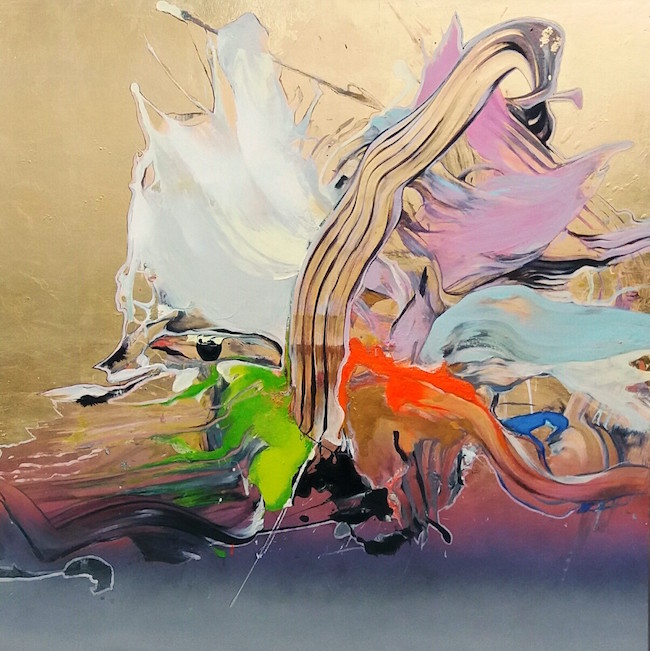 Ilgvars Zalāns. "Zelts un hroms". 2018. 100 x 100 cm. Akrils, zelta pigments