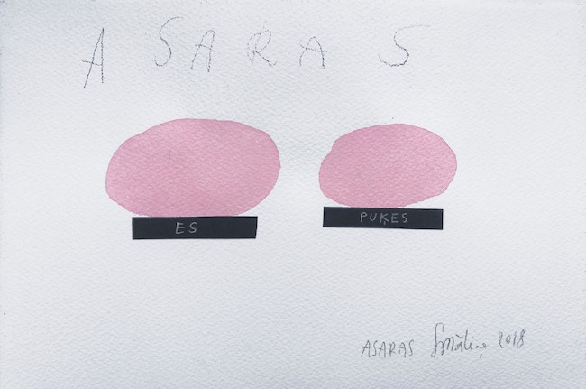 Divas ovālas formas, kas veidotas no sārta stikla, melnos granīta podestos, kuros iegravēti teksti "ES" un "PUĶES". Rozā asaras ir simbols tam, ka laikmetīgajā mākslā drīkst uzvesties tā, kā uzvedās mūziķi, sacerot dziesmas par mīlestību – salkani, naivi un nebaidoties no melanholiska, romantiska apcerīguma. Šīs jūtas uzpeld arī, skatoties uz mākslu, un par tām gribas runāt nebaidoties. Atpazīt un noticēt tām ir grūti. Tie ir centieni pārvarēt savus aizspriedumus un ļauties šim pārdzīvojumam," izstādes pieteikumā vēstī tās kurators Tomass Pārups.