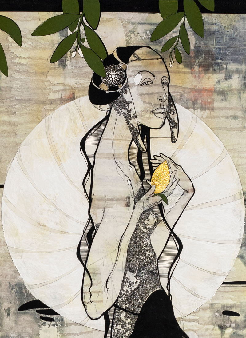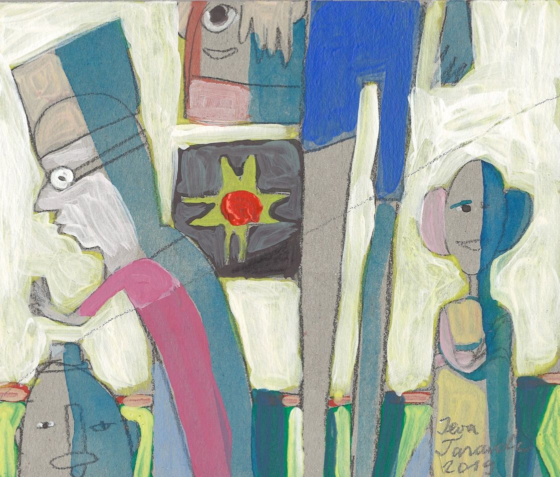 Ieva Taranda. Plūsma. 2019. Kartons, zīmulis, akrils, eļļa. 19 x16 cm (Fragments)