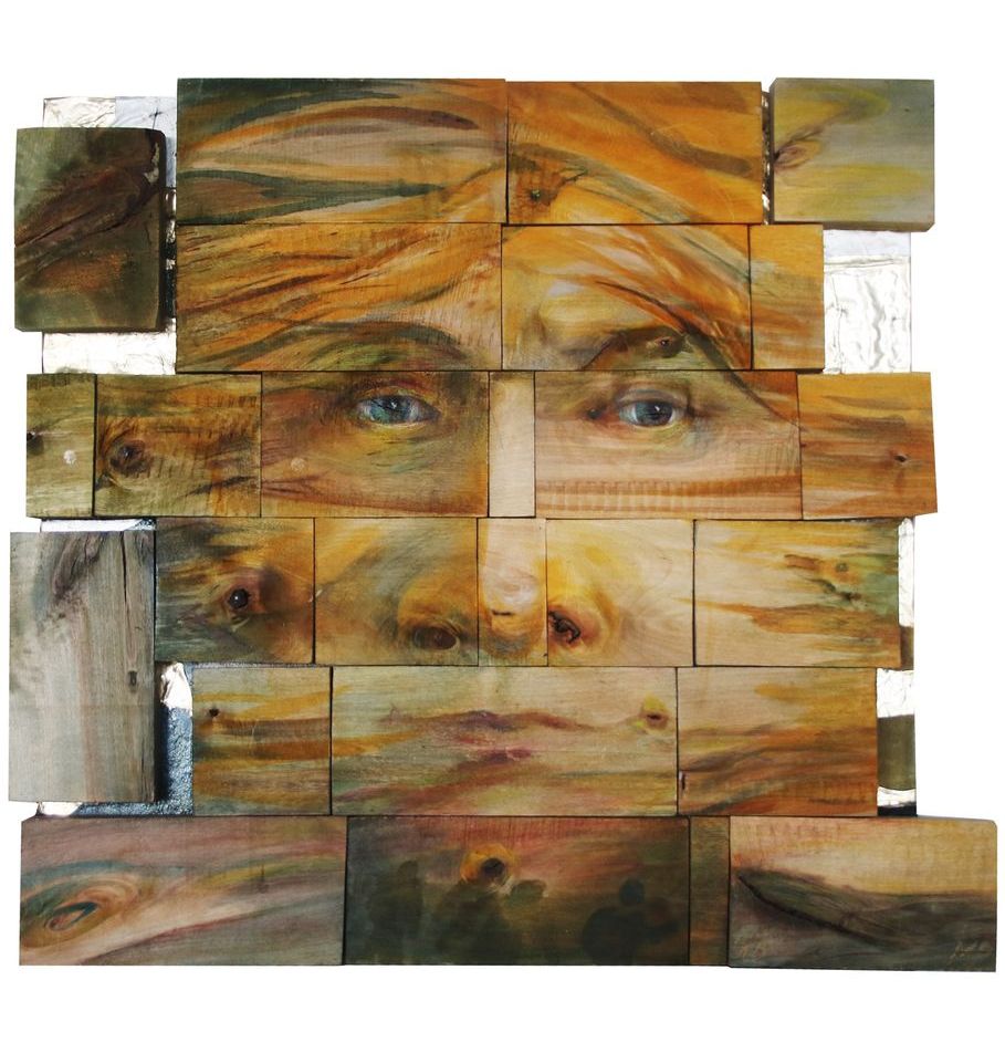 Maija Purgaile. Krāsnij atņemto kolāža I. 2015. 48x53. Koks, akrils