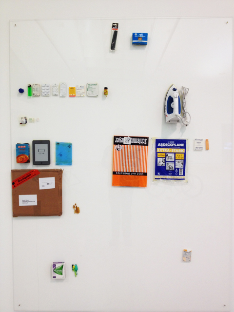 В самом деле, работы сильно разрознены. Даже ещё сильнее, что в этом варианте (там пять таких стендов, на которые налеплены случайно найденные штучки – поди, кстати, пойми, к чему они относятся – к деньгам, к кризису или к материалам: или всё это в данном случае вообще одно и то же?).