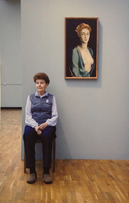 Из пресс-релиза: «Американский фотограф Энди Фриберг в 2008–2009 годах создал серию фотопортретов музейных смотрительниц в разных российских художественных музеях – Русском музее, Пушкинском музее, Третьяковской галерее, Эрмитаже». А потом всё это доделал и привёз в Россию. Пять лет тут не срок – за это время музеи не изменились. Называется, конечно, «Смотрительницы».