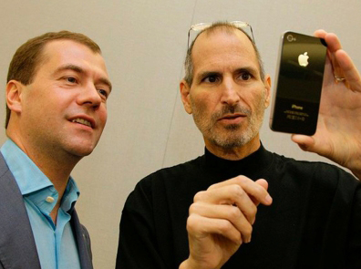 Премьера РФ Медведева (в момент съёмки – президента РФ) учат делать селфи