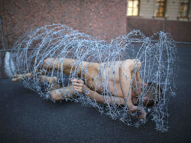 Pusst Riot отправились гастролировать по миру, а вот их мольба к Богородице кое-кого прогнать (в формате клипа, а не акции, да и не клипа, а последующей социально-судебной чухни) по факту подействовала как-то ровно наоборот. Были акции Павленского, вот они были хороши. Но – сами по себе куда сильнее, чем их интерпретации. Акция «Туша»: «Нагого, завёрнутого в многослойный „кокон” из колючей проволоки художника принесли ко входу в здание Законодательного собрания Санкт-Петербурга. Полусогнутый, неподвижный и безмолвный художник лежал в этом „коконе”, никак не реагируя на реплики и действия окружающих». Но это куда круче, чем рассуждения о том, что это «арт-акция протеста против репрессивной политики властей в РФ». Но вот экзистенция как таковая вычёркивается сразу, едва только упомянуты репрессии и власть. Ну да, как бы это и входило в замысел, учитывая, что Павленский работал перед зданием Законодательного собрания СПб. Могло быть не о власти, но он предпочел, чтобы о власти. Все согласны. Вся экзистенция акции уходит к власти бонусом, имхо. Внимание к власти всегда обслуживает именно её.
