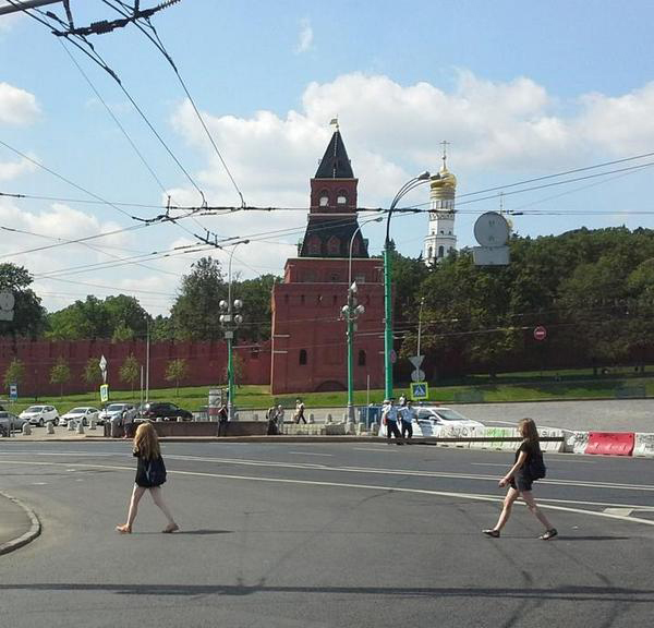 То есть некоторая интерференция опыта присутствует. Но зачем тогда рассчитывать маршрут так, чтобы в момент прохождения через Площадь Революции солнце оказалось именно в зените? А потом они еще и мимо Кремля идут. То есть утверждается, что «другие подтексты», но всё равно – через Кремль. Но, собственно, это и есть обстоятельства российской жизни: ну как мимо Кремля пройти, если хочешь снизу доверху через центр? Роковая российская неизбежность. Впрочем, похоже, что через Красную площадь они всё-таки прошли, разве что сбоку, вдоль ГУМа.