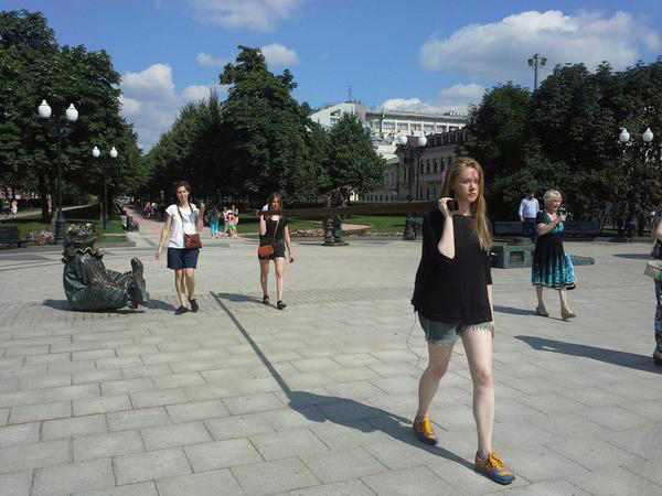 Фото из ФБ Wladimir Kobsewс комментарием: «Не видел Ганнушку три года, а тут смотрю, идёт по Ордынке с железным шлангом»