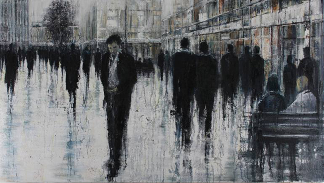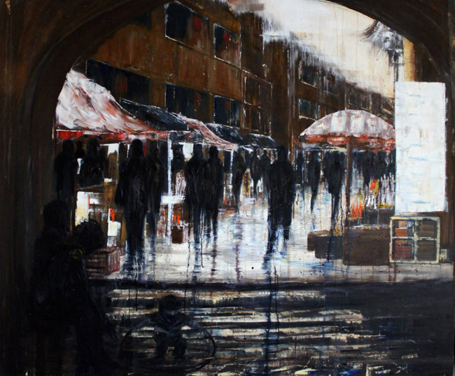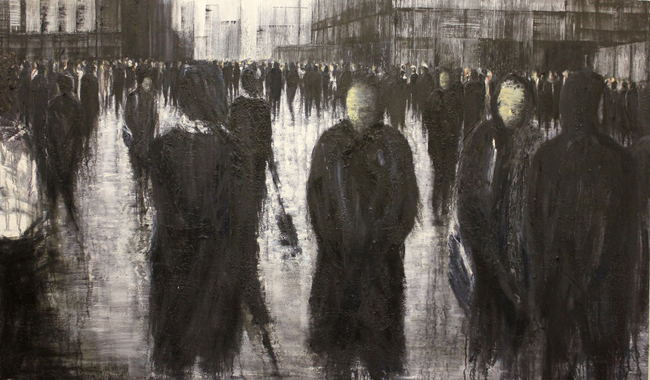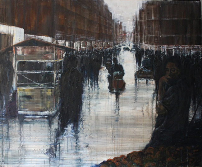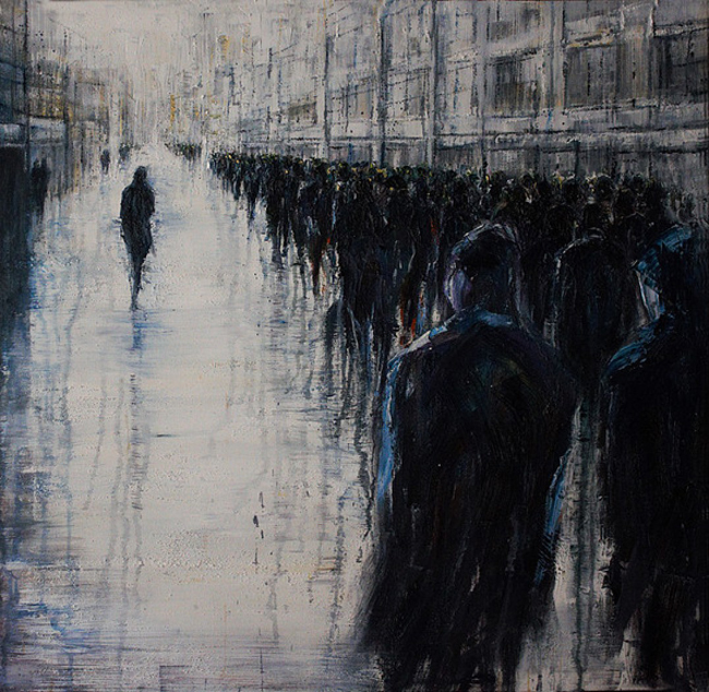 Это был общий фактчекинг. Что до художницы, то её работы как бы вполне прямолинейны и, в принципе, можно бы уже заключить, что и городской мрачняк тоже повод для искусства. Тоже дело. Но там не всё так прямолинейно. Вообще, она не всегда пишет толпы.