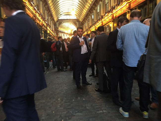 Это пассаж возле Сити, пятница (19 августа 2016-го). Толпа есть, печали не видно, индивидуальности налицо. Полагаю, эти люди благожелательно отнеслись бы к работам Олдэкер – по крайней мере, в тот момент. Всё же такое колеблющееся, поди пойми, где найдёшь, где потеряешь – хорошее настроение, например. Ну, а ещё Leadenhall присутствует и в известном клипе Erasure с уместным здесь названием: «Люблю ненавидеть вас», Love To Hate You. Ну, и все весьма радуются, слушая эти слова рефреном. Так что и в мрачности есть поводы для удовольствия как минимум – если это и была мрачность. Потому что в действительности всё обстоит совсем не так, как на самом деле.