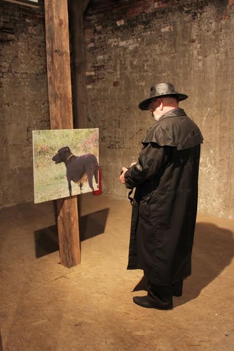 Книга сказок – как раз фетиш известной видеохудожницы Кристины Инчиурайте, о которой мы уже писали. На холсте – цепная собака из фильма Кристины «Выживание», янтарем маркированы обвисшая грудь овчарки и ошейник. Грудь до земли – символ женщины-матери. Ошейник своим видом намекает, что где-то неподалеку должны быть и цепь и будка – социальные рамки, которые каждый раз пытается преодолеть художница, снимая фильм то о девушках в колонии, то о женщинах, служащих в полиции, то о бывших активистках реформаторского движения.