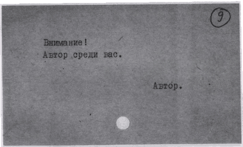 Этот набор карточек с текстом тоже был впервые запущен «в люди» в одной из художественных мастерских – в гостях у Эрика Булатова. Как писал в небольшом тексте «Московский концептуализм: 25 лет спустя» Борис Гройс, «концептуализм понял визуальное искусство как своего рода язык, а текст – как своего рода изображение». В истории культуры это один из примеров на редкость плодотворного симбиоза поэтов и художников, которые не иллюстрировали друг друга, а думали в одном общем направлении.