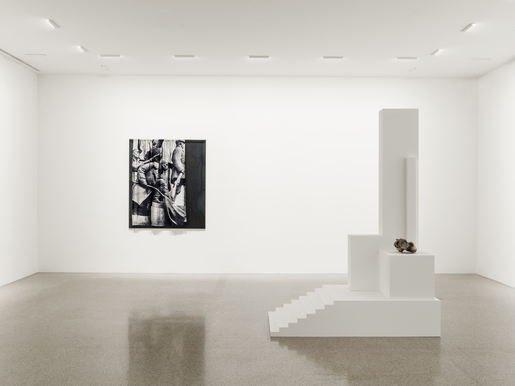 «Сломанное древко» (2019) и «Победа» (2017). Вид экспозиции в музее MUMOK в Вене