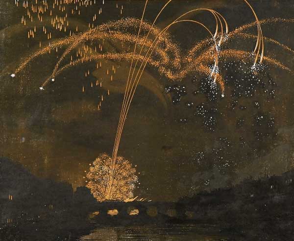 А.П. Остроумова-Лебедева. Фейерверк в Париже. 1925. Бумага, цветная ксилография. 37,3 × 45,8. Третьяковская галерея