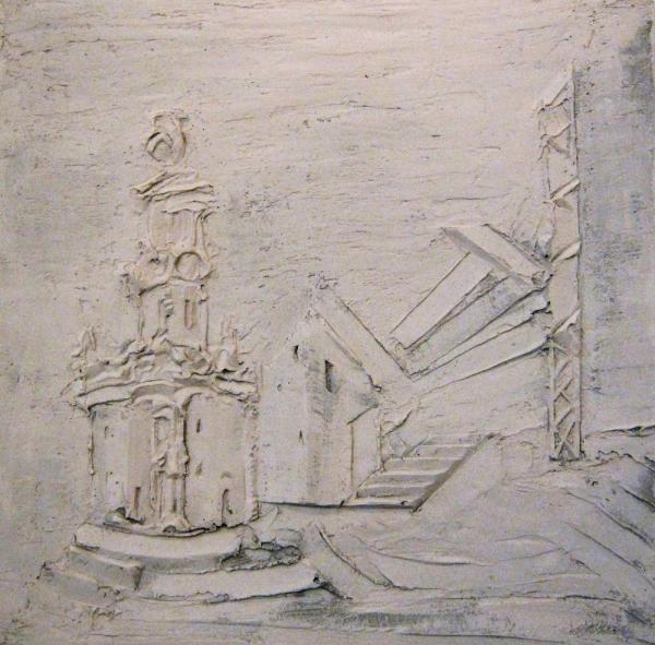 Борис Кочейшвили. Башня в лесу. Фанера, гипс, акрил. 73 х 73. 2009