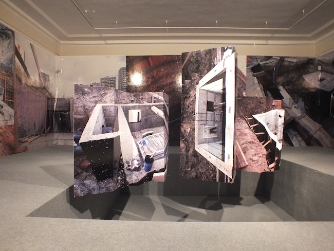 Образ коллекционера, фланёра, экспедитора, сборщика улик совершенно артикулирован на выставке лучшим её экспонентом Яном Тамковичем. Художник выбрал себе архисложную тему реинтерпретации главнейших мифологем московского концептуализма. И справился с ней выдающимся образом потому, что позволил себе расшатать старые конструкции, но не для уничтожения их, а для обретения нового смысла. «Тотальная экспозиция» Тамковича обращает к двум важнейшим понятиям концептуализма СССР: «тотальная инсталляция» Ильи Кабакова и «экспозиционное поле» Андрея Монастырского. Когда входишь в комнату, видишь вывернутый наизнанку, превращённый в бассейн с неглубоким дном подиум из ковролина. Он напоминает бетон на стройках и полы в выставочных павильонах. Над бассейном парит складень из фотографий, напоминающий архитектурно оформленный средневековый алтарь. Фотографии режут пространство своими гранями, объёмы уходят в перспективу как в детских книжках-раскладушках. Силуэтом складень напоминает здание «Лукойл» на Тургеневской – образец долгостроя эпохи застоя. Именно его наблюдал из своих окон в доходном доме «Россия» (ныне Институт проблем современного искусства) Илья Кабаков. Дом, куда въехал после долгосрочного ремонта «Лукойл», стал инспиратором кабаковского творчества, начиная с 1968 года. То есть копание ям для фундамента совпадало у Кабакова с разработкой рам, фонов, щитов в качестве самого воплощения предметной художественности. А когда из фундамента начала расти архитектура, тогда экзистенциальное напряжение гравитационных полей изображения ослабло, и наступила эра кабаковских реди-мейдов. Опыт Ильи Кабакова оказал влияние на Андрея Монастырского, на его проект «Земляные работы» и формулировку понятий «экспозиционное поле» и «демонстрационное поле». «Земляные работы» – это работы, которые в советское время выполняло СУ-40. Это котлованы, ямы, траншеи, тоннели, украшавшие в годы наибольшей творческой активности лидеров московского концептуализма столичный ландшафт (со всеми само собой разумеющимися атрибутами – щитами, финскими фонарями, дорожными знаками, бетономешалками и непролазной грязью в радиусе 100 метров). Монастырский уверяет, что эти работы оказали огромное влияние на «демонстрационное поле» (собственно художественный текст) произведений московского концептуализма. Монастырский считает, что советские стройки инспирировали и акции группы «Коллективные действия», формообразующей предметностью которых является работа с почвой и пространством (копание ям, натяжение веревок, проводка коммуникационных осей – всё это в безлюдном поле на природе). Само поле «земляных работ» – шокирующее своей могучей, хтонической, ископаемой (в прямом смысле) безусловностью окружающее текст художника пространство. Его Монастырский определил «экспозиционным знаковым полем».