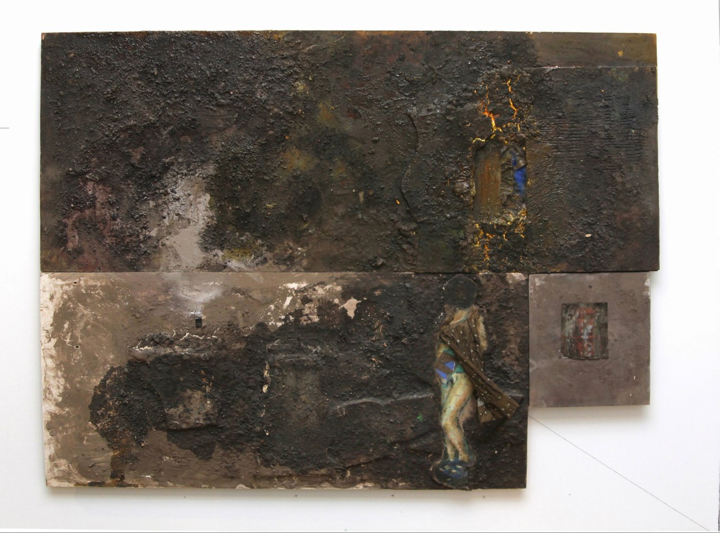 Конечно же, в этих работах существуют отсылки к истории искусства, но для Цикаришвили гораздо важнее истолкование «низкого», массовой продукции начала 1990-х годов, на которые пришлось детство художника. На родной грязи замешан удивительный микс из ржавого железа, ярких обёрток и рекламы, кислотного цвета тряпок, сигаретных пачек и окурков, всякого китайского и турецкого ширпотреба – образом, идеально подходящим к этим работам, можно назвать Сенную площадь около 1992 года, воспринимаемую как тотальный ассамбляж.