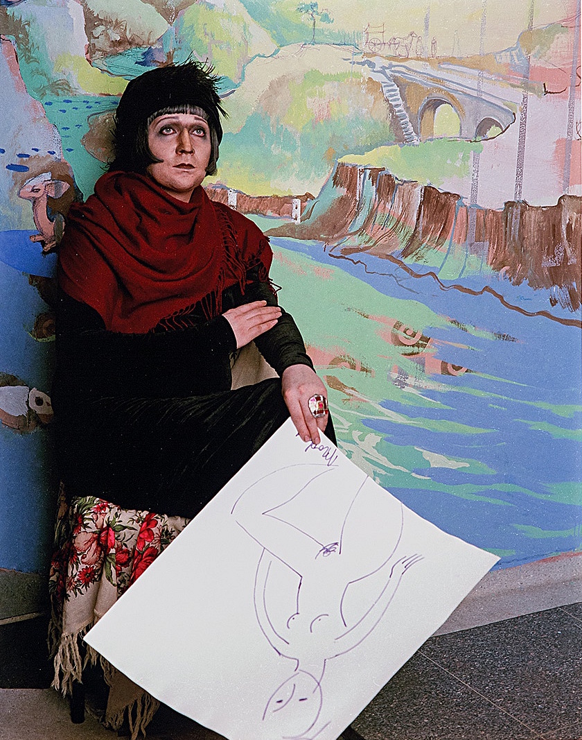 Так что сама пьеса с актёрами – неподвижными артефактами – получилась очень интересной и ожидаемо актуальной. Пятнадцать шагов-эпизодов собирают нам траекторию путешествия по экспозиции. Остроумно и легко произведения участвуют в некоем диспуте-читке на темы: выбор актёра, что будем играть, комедию или трагедию, что такое «быть другим»… В одном зале, например, встретились известные диверсанты-травести: Синди Шерман, Кьяра Фумай, Владислав Мамышев-Монро, Юрий Альберт… Их искусство подчас изощрённым концептуальным, подчас грубым бурлескным способом обращает к проблеме оборотничества, поиска «другого в себе». Не есть ли эта проблема суть лицедейства как такового?