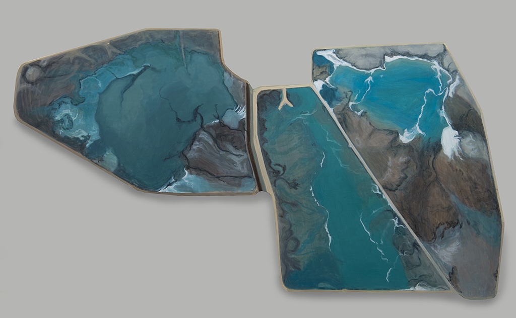 Лучшим стендом, по моему мнению, оказалась программа галереи JART. Представлены визави два мастера, Павел Отдельнов и Илья Трушевский. Тема – «Запретная зона». Входишь в бокс. Красивые, буржуазные вроде работы справа и слева: у Отдельнова яркие, сверкают как ювелирные изделия, у Трушевского каллиграфичные, «искусство для искусства». На поверку и те, и другие оказываются оборотнями. Малахиты и янтари Отдельнова – это увиденные с высоты птичьего полета территории мёртвых зон, резервуары для утилизации химических отходов, которые лишайниками покрывают землю. Родившийся и живший в зоне экологической катастрофы, Дзержинске Нижегородской области, Павел Отдельнов занимается изучением влияния этих «чёрных дыр» на экологию, социальную среду. Создаёт пластические квесты, в которых надо блуждать, а поводырь-рассказчик грозит вот-вот исчезнуть, оставив зрителя в растерянности и тоске. Уникальный честный опыт. Важный во время, когда потёмкинские деревни российской политики маскируют катастрофические хозяйственные и политические проблемы.