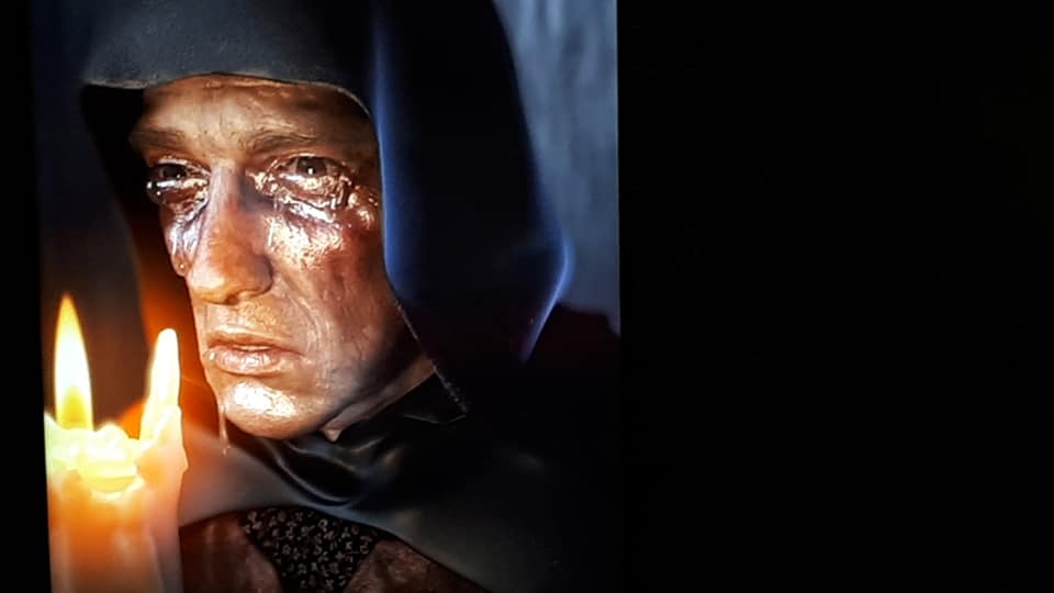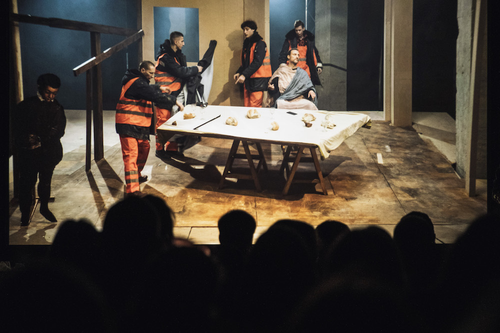 Тинтореттовский свет помогает выявить конструкцию, анатомию «вещества жизни», определяющего сопряжения церковных сводов и арок в случае с видеопроекциями Гари Хилла. Однако его подлинно магическая суть раскрыта идеально в фильме Дмитрия Крымова. Мы являемся свидетелями демонтажа иллюзии. Созданная специально в качестве постановочной сценографии картина Тинторетто «Тайная вечеря» из церкви Сан-Тровазо в кино и в реальном времени перформанса разбирается на глазах. Пришедшие в церковь прямо вместе со зрителями рабочие оказываются по ту сторону экрана. Они уносят обрезные фигуры – репродукции персонажей картины. Оживает Спаситель. Снимает с себя сценическую одежду. Берёт в руки смартфон. В главной роли оказывается актёр Анатолий Белый. Камера вращается внутри бывшего фабричного цеха. Через экран проходит взволнованная женщина в пальто. Вообще вся магия вывернута на рабочую изнанку. Если в русском павильоне в мистический сумрак нас всеми силами вгоняли, то здесь всё словно развеивается в какой-то смиренной простоте. И вот – чудо. В момент, когда иллюзия превращается в механику, машинерию, мы начинаем сострадать происходящему с необычайной интенсивностью. Крымов вернул живой, одухотворённый, тончайший в нюансах свет Тинторетто, проявив его в сценах повседневной рутины, обычного порядка вещей. И это – счастье. Стало быть, великое искусство – вот оно, с нами, преобразует каждый миг нашего пребывания здесь. Имеющий глаза – увидит…