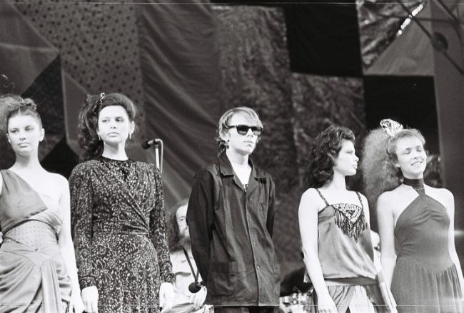 ... или финалистки первого ленинградского конкурса красоты. Посередине – Сергей Бугаев (Африка). Фото: Лев Гончаров