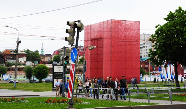 Проблема состояла в том, что он, совриск... как бы это сказать...не слишком-то в России присутствует, даже в столицах: чтобы вот, своим ходом, естественным порядком вещей постепенно укореняться в людях и природе. В России его вставили в формат некоего прорыва, который должен почти мгновенно отапгрейдить всех. Но так же не бывает. Вот, скажем, пермский фестиваль двухлетней давности. Большая поляна – это Эспланада (кстати, хм). Большая, больше рижской раза в четыре. С одного края – театр, с другой – госучреждения. Когда фестиваль – на ней сцена, всякое прочее, а примерно посерёдке был объект – вполне типичный для оформления города времён Гельмана.