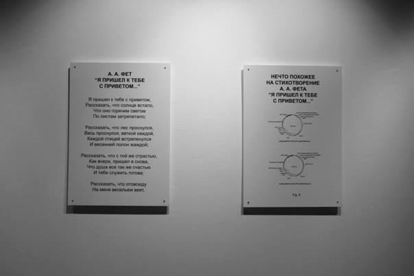 Заявив о себе на одних из главных ежегодных «смотрин» современного искуства, медиапоэзия уже на легитимных основаниях становится частью арт-процесса. Так что к началу объявленного в России Года литературы понятие «медиапоэзия» не только утвердилось в поле «актуального», но и прочно укрепило свои позиции. А за текущий 2015 год и совсем уже успело примелькаться: одновременно в Москве в новой арт-галерее «Сколково» в течении пяти месяцев проходит трёхчастная серия медиапоэтических резиденций и выставок «Медиапоэтические машины», а в Санкт-Петербурге – подготовка к трёхдневному международному фестивалю медиапоэзии 101, который и был реализован в апреле на Новой сцене Александринского театра и в Смольном институте искусств и собрал не только российских, но и латвийских, английских, корейских и американских художников и поэтов. По итогам каждой резиденции из серии «Машин» проходила парная выставка двух участвующих в текущем этапе резидентов. Всего таких резиденций и соответственно выставок состоялось три: в феврале – «Опции слов» (художники Елена Демидова и Наталия Федорова), марте – «Взлом эфира» (художники Ирина Иванникова и Евгений Кузин), а в апреле – «Менее сильные рифмы к слову “утопия”» (художники Анна Толкачёва и Андрей Черкасов). На выставках резиденты, сфокусировавшись на одной теме (возможности текста, информационный шум, локальное в масштабировании на общеполитическое), раскрывали своё видение медиапоэзии в попытке работы с выбранными проблематиками и решения художественных задач лишь её средствами. А итоговая выставка «Вдохновение + Алгоритмы» проходит прямо сейчас и продлится до конца июня, собрав всех участников воедино. Если «Медиапоэтические машины» растянули по времени свои выступления, дискуссии и мастер-классы художников-резидентов, то «Фестиваль 101», наоборот, собрал все возможные виды медиапоэзии в три чрезвычайно плотных дня, наполнив здание Новой сцены Александринского театра, а также, что немаловажно, и интернет-пространство работами буквально под завязку. Но несмотря на разную длительность, для формирования условного медиапоэтического дискурса я бы сочла их равнозначимыми событиями.