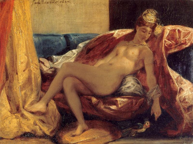 Неистовым романтиком Делакруа – особенно по сравнению с Энгром – делают не только его перекрученные, скверно исполненные фигуры и завихрения стихий, не только байроновские сюжеты и шокировавшие публику современные политические сюжеты. Неистовым романтиком Делакруа делает ориентализм. Хотя у Энгра вроде бы можно найти примеры этого жанра (например, знаменитая «Турецкая баня», ей посвящены лучшие страницы упомянутой книги Калассо), но, конечно же, вершиной его считается Делакруа. Что, между прочим, тоже странно, если иметь в виду ярких и пёстрых Декана, Шанмартена, Жерома, Фрера и многих других. Я уже не говорю об английских ориенталистах, да и некоторые другие страны внесли сюда свою лепту. Тем не менее Делакруа – это Восток. Нет, неверно. Восток – это Делакруа.