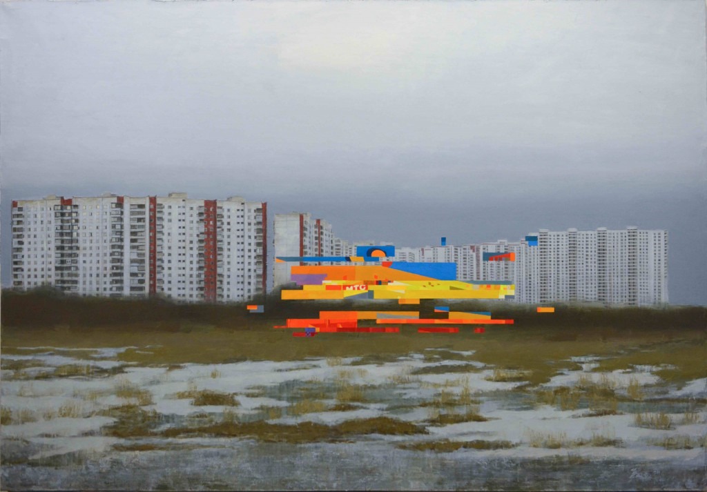 Уверен почему-то, что нравится она сегодня не из-за своей экстравагантности, а из-за странной попытки обрести новое качество и обрести честную позицию «предметного разговора» в межеумочном мире современного человека. Современный человек собирает себя по принципу планшетной регистрации – какая информация падает к нему на смартфон, та и создаёт картину мира. Этот такой принцип радикального сближения разностей, оксюморон как он есть. Так вот и индустриальная живопись соцреализма тоже была оксюмороном. С ней солидаризироваться легче. Сегодня «совпасть» эмоционально с безупречно стилистически выдержанными модулями Родченко, супрематическими трапециями Малевича или контррельфами Татлина куда сложнее для многих, чем оценить тектонические сдвиги почвы или фактуру «дорожной» живописи Нисского. К тому же беспредметный авангард апроприирован большим бизнесом. А как раз куда менее амбициозные пейзажи со строительной сутолокой воспринимаются не только в перспективе арт-рынка. Они отзывчивее и неожиданно сулят свободу личной интерпретации.