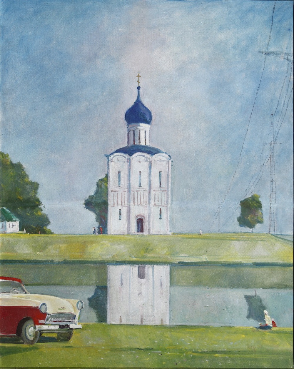 На одной картине Нисского церковь Покрова на Нерли изображена как модель из 3D-принтера, в левый угол въехал старый раскрашенный в яркие цвета автомобиль. Справа трамплином вздымаются провода высоковольтки. На линии горизонта отформовано дерево, крона которого – система подвижных плоскостей. Всё вместе создаёт головокружительный эффект сгенерированных сюжетов, вытащенных фрагментов картинок из глобальной сети. Они стали материалом постсетевого коллажа. Неспроста за работами Нисского на выставке в ИРРИ линию горизонта замыкают холсты современного успешного мастера Павла Отдельнова, в которых система монументальной советской живописи работает как компьютерный глитч.